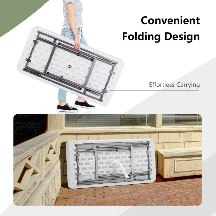 3.Sturdy and Solid Construction: The table top is crafted of high-quality and long-lasting polyethylene which is solid enough to maintain years of use. Four legs are made of solid iron with exquisite finish and remain rust-resistant. Both of them ensure its durability and stability.