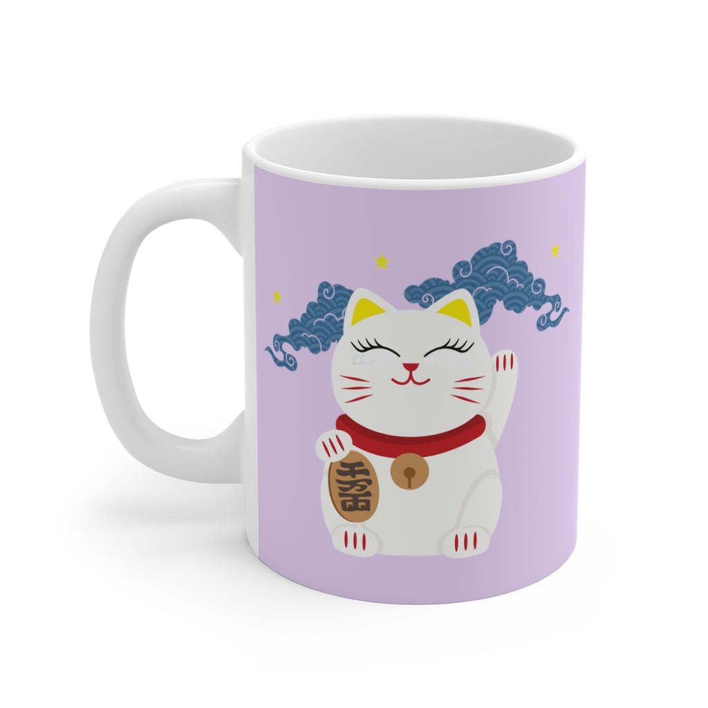 Lucky Cat Mug.  It's microwave & dishwasher-safe and made of white, durable ceramic in an 11-ounce size.  The perfect gift for the coffee, tea, and chocolate lovers.