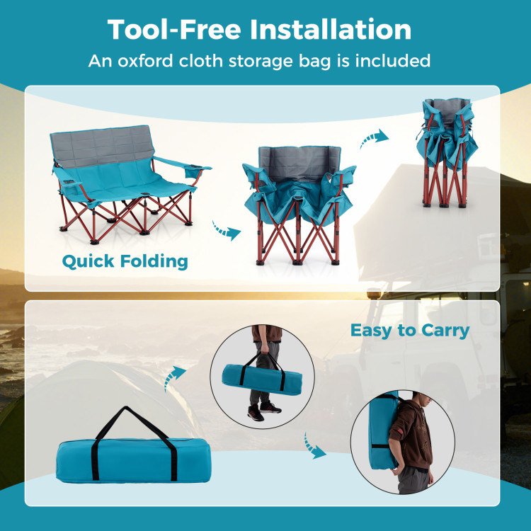 Oversized Camping Chair Folding Loveseat Camping Couch with Cup Holders & Thick Padding