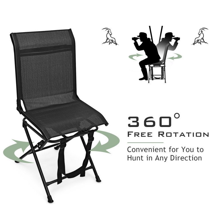 2.360 Degree Free Rotation: Thanks to its rotation function, you can sit on the chair and rotate freely according to your needs. 360-degree rotation allows you to easily focus on and keep track of your target, which is convenient for hunting. Besides, the metal connector helps you effortlessly turn to different positions.