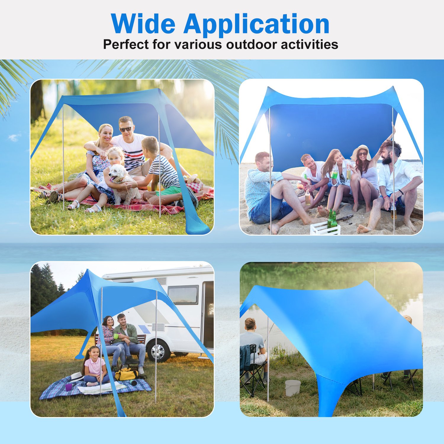 *Flexible Sun Shelter*:As time goes by,the sun will move and the light irradiation angle will also change. Due to the adjustable poles,you can flexibly change the sun shelter construction mode. Always protect you and your family from getting in touch with direct and searing sunshine.