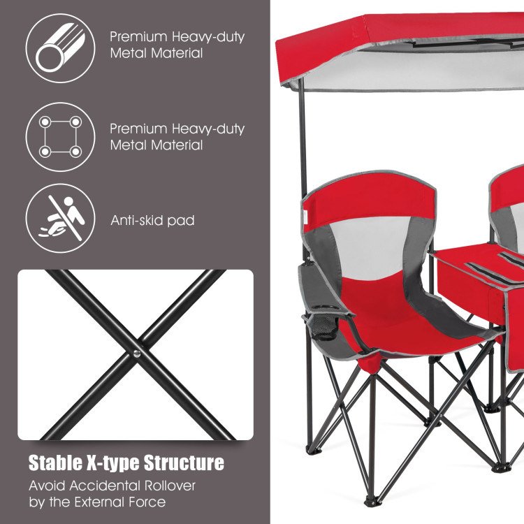 This double sunshade folding chair will provide you with a large shelter and a comfortable outdoor experience.