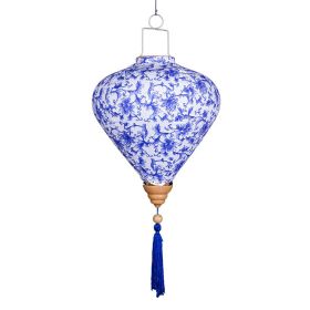 14'' Chinese Style Cloth Lantern Diamond Shape Hanging Lantern for Home Garden Party Wedding Lampshade, Blue Floral