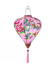 14'' Chinese Style Cloth Lantern Diamond Shape Hanging Lantern for Home Garden Party Wedding Lampshade, Pink Floral