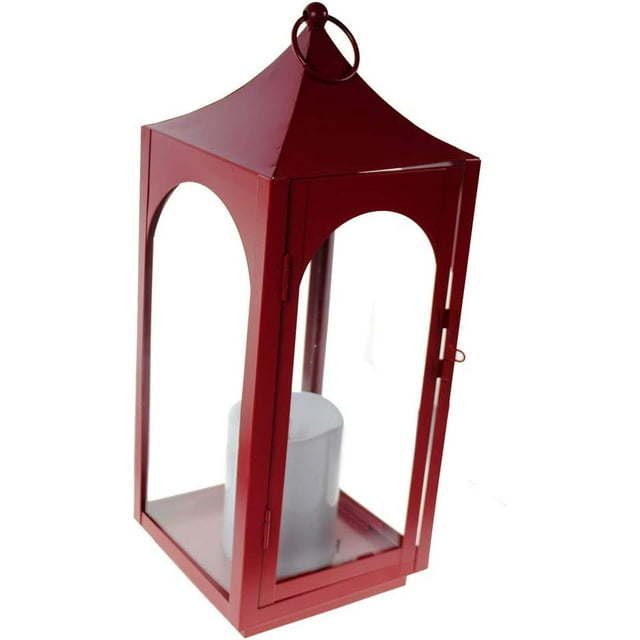 Shop4Omni 15 Inch Decorative Lantern Centerpiece with Flickering LED Candle / Red Shop4Omni 15 Inch Decorative Lantern Centerpiece with Flickering LED Candle / Red Shop4Omni 15 Inch Decorative Lantern Centerpiece with Flickering LED Candle / Red
