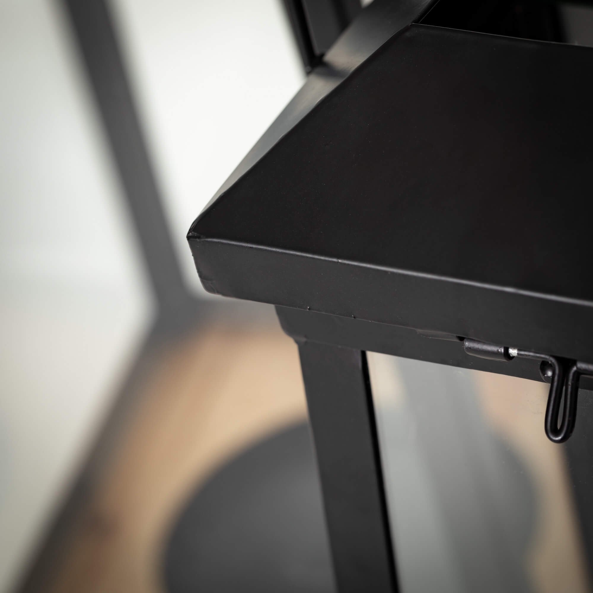 These lanterns add a nostalgic touch to any room, while the black finish and sleek lines fit into both a modern or traditional setting. Display this pair of lanterns alone on a porch or in a living room, or as part of an arrangement of your favorite decor.