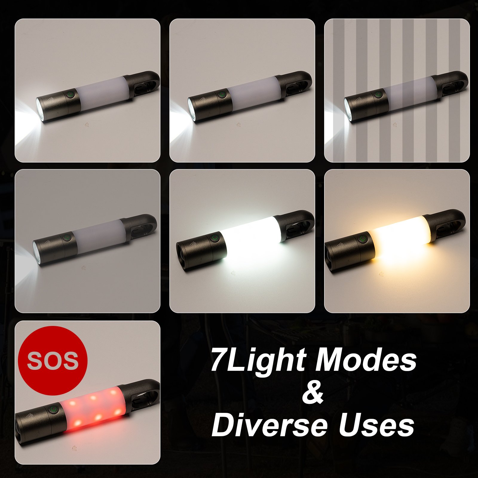 • 【7 Light Models & Diverse Uses】Including Flashlight(strong+medium+ blinking +SOS light)+ Lantern (white+warm+red SOS light) total 7 light Models; A single press is all you need to switch modes and adjust to multiple situations like camping, book reading, fishing, expedition, hiking etc.