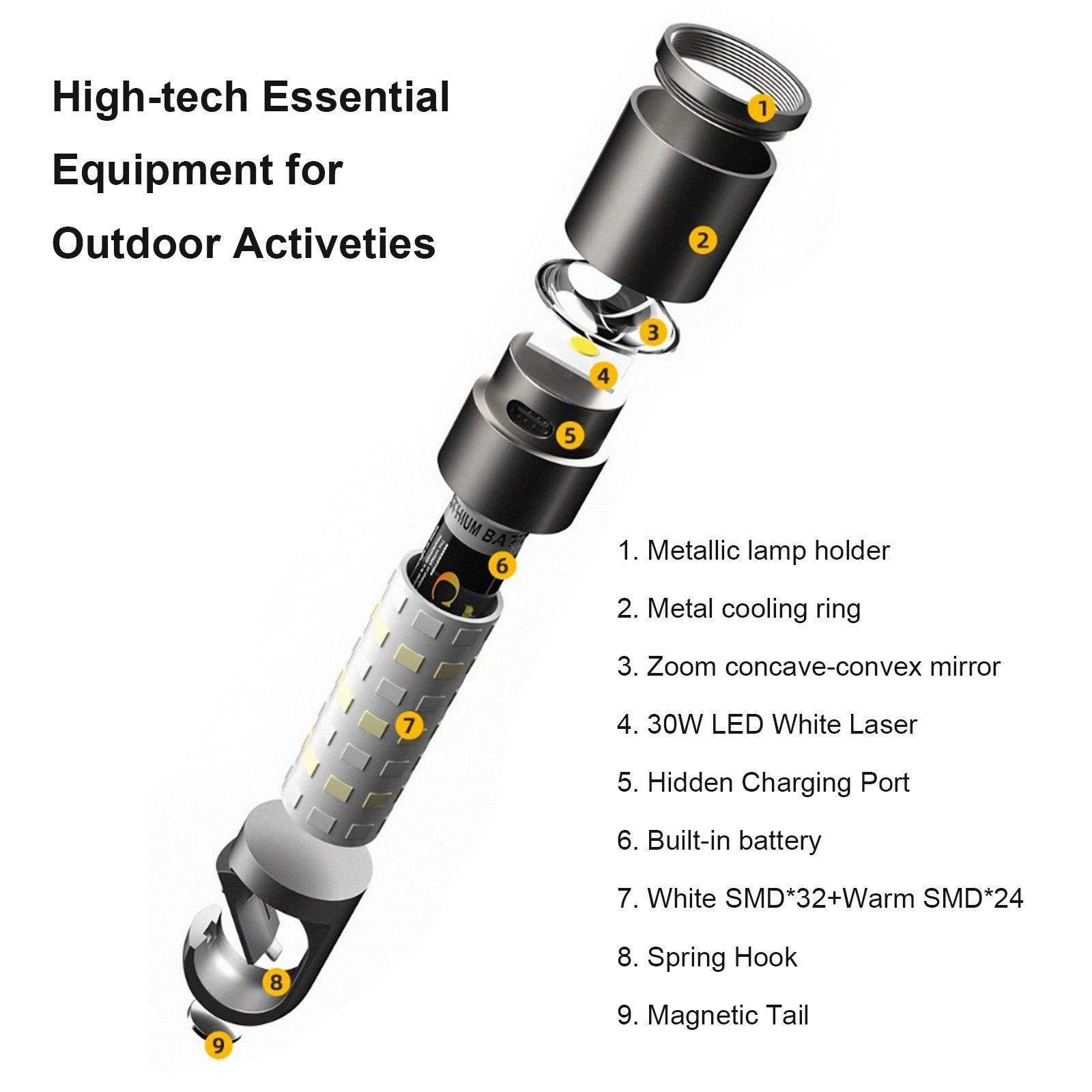 • 【Enhanced Lighting Modes & Adjustable Zoom】 With the touch of a button, the flashlight effortlessly switch between high, low, and strobe modes to suit your needs. The zoomable feature allows you to adjust the beam focus, providing both close-up illumination and long-range visibility.